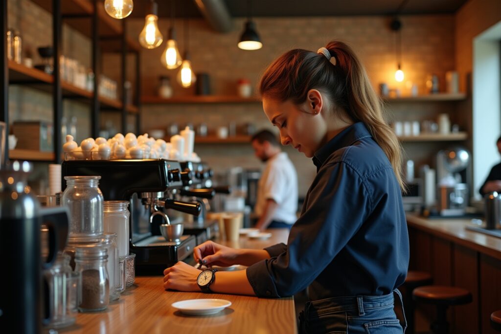 Die Ergonomie ist ein weiterer wichtiger Faktor. Ein gut gestalteter Barista-Tisch berücksichtigt die Bewegungsabläufe des Baristas. Dazu gehören: