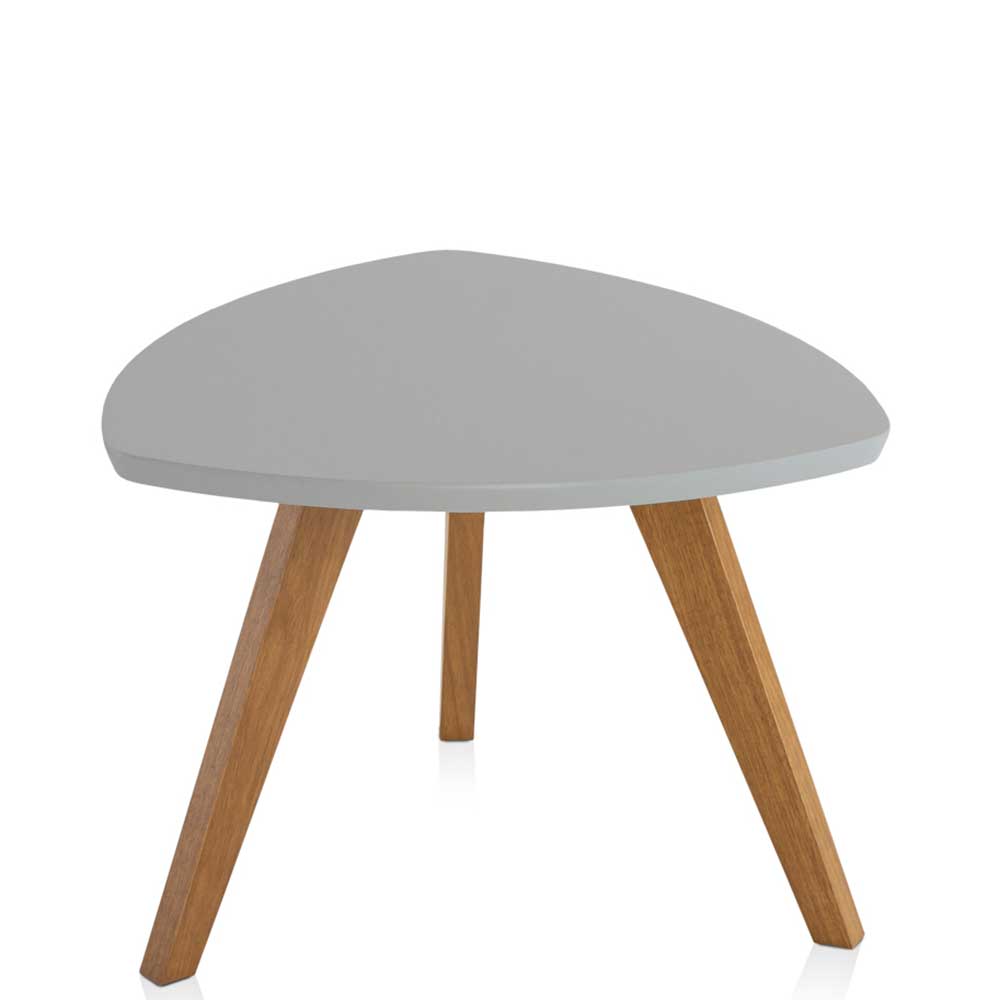 Die Beine aus massivem Eichenholz sind nicht nur ein optisches Highlight, sondern sorgen auch für eine hohe Stabilität und Standfestigkeit. Die natürliche Maserung des Holzes verleiht jedem Tisch einen einzigartigen Charakter und macht ihn zu einem unverwechselbaren Einzelstück. Die Kombination aus dem hellen Grau und dem warmen Eichefarben schafft einen harmonischen Kontrast, der den Retro-Look perfekt unterstreicht.