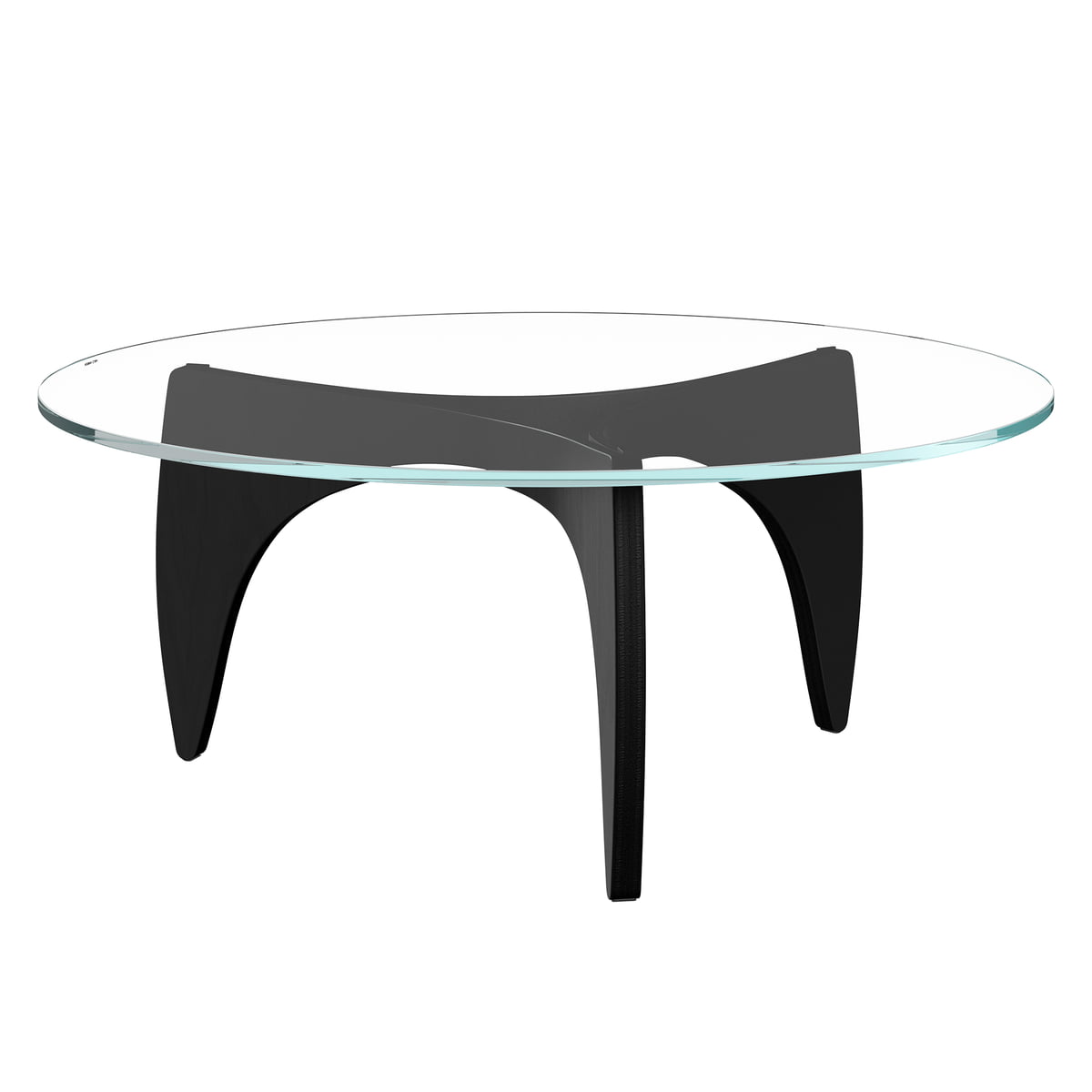 Die transparente Glasplatte bildet einen spannenden Kontrast zum schwarz gefärbten Eschenholz. Sie ist aus hochwertigem Sicherheitsglas gefertigt und besonders widerstandsfähig. Die glatte Oberfläche ist leicht zu reinigen und verleiht dem Tisch eine elegante und moderne Note. Durch die Transparenz der Glasplatte wird der Blick auf die filigrane Holzstruktur freigegeben und das Design des Tisches kommt optimal zur Geltung.