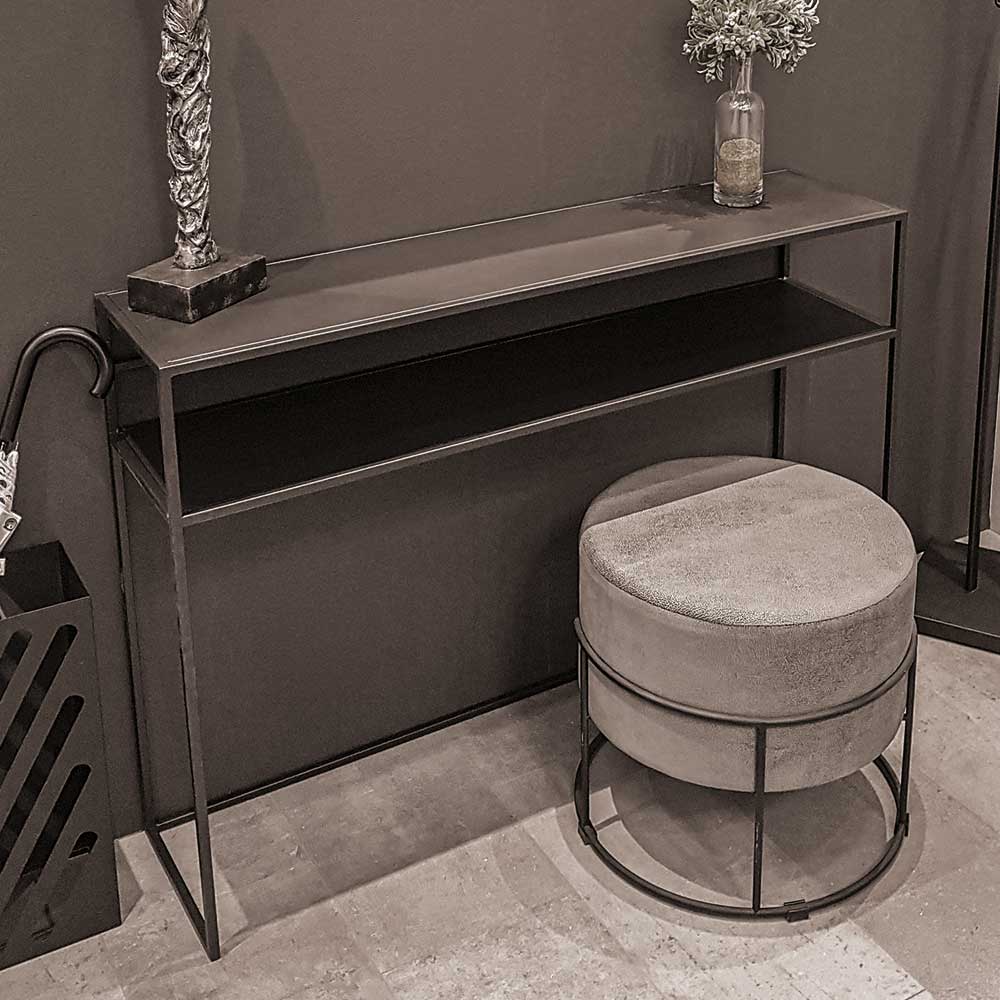 Verleihen Sie Ihrem Zuhause einen Hauch von modernem Industrie-Chic mit unserem atemberaubenden Garderobentisch mit Metalloberfläche. Dieser Tisch ist nicht nur ein praktisches Möbelstück, sondern auch ein Statement-Piece, das Ihren Eingangsbereich oder Wohnraum in einen stilvollen und einladenden Bereich verwandelt.