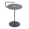Der Tisch hat einen Durchmesser von 38 cm und eine variable Höhe von 50 cm oder 62 cm.
