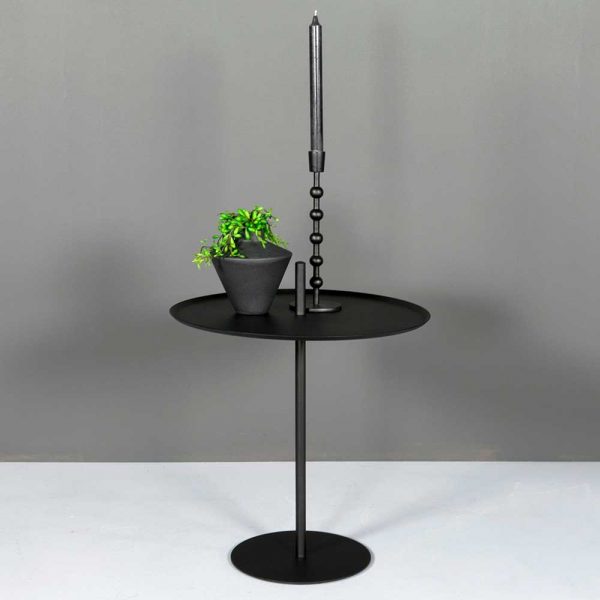 Die schwarze Pulverbeschichtung verleiht dem Tisch eine edle und zeitlose Optik. Das matte Schwarz harmoniert wunderbar mit verschiedenen Einrichtungsstilen und setzt einen stilvollen Akzent, ohne dabei aufdringlich zu wirken. Ob im Wohnzimmer, im Flur oder im Schlafzimmer – dieser Tisch ist ein echter Blickfang.