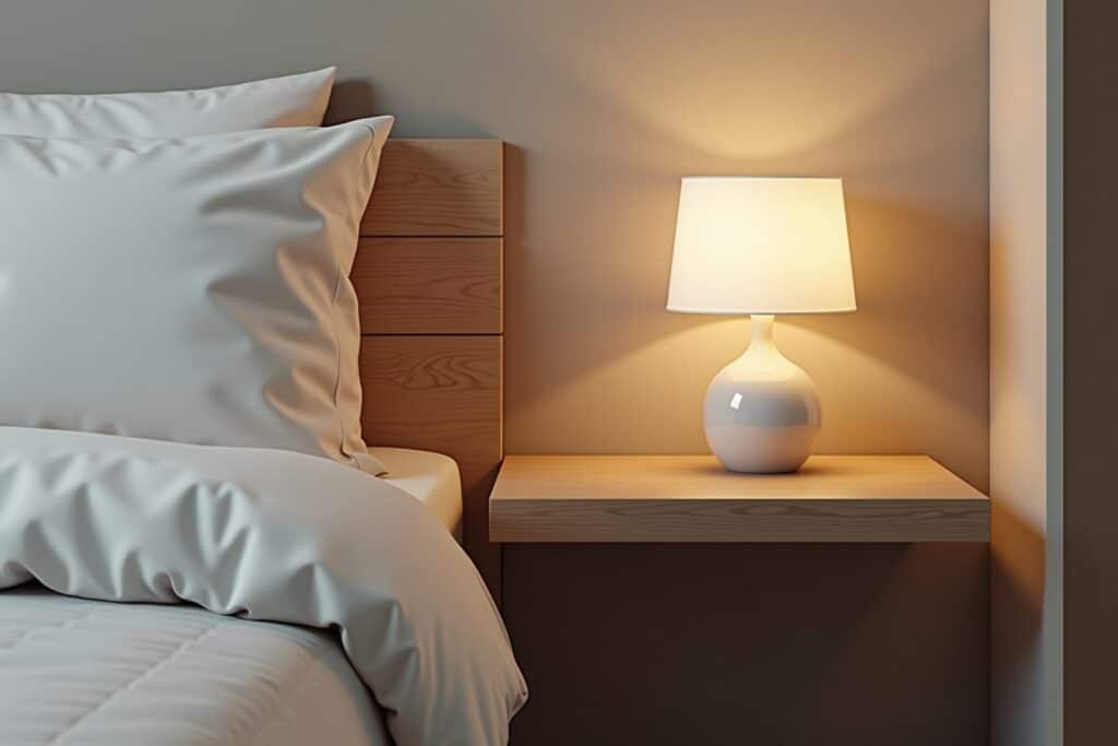 - Lichtquelle berücksichtigen: Wähle eine Nachttischlampe, die proportional zur Größe des Nachttisches ist. Eine schlanke Stehlampe, die neben dem Nachttisch platziert wird, kann ebenfalls eine gute Alternative sein, um Platz auf der Oberfläche zu sparen.