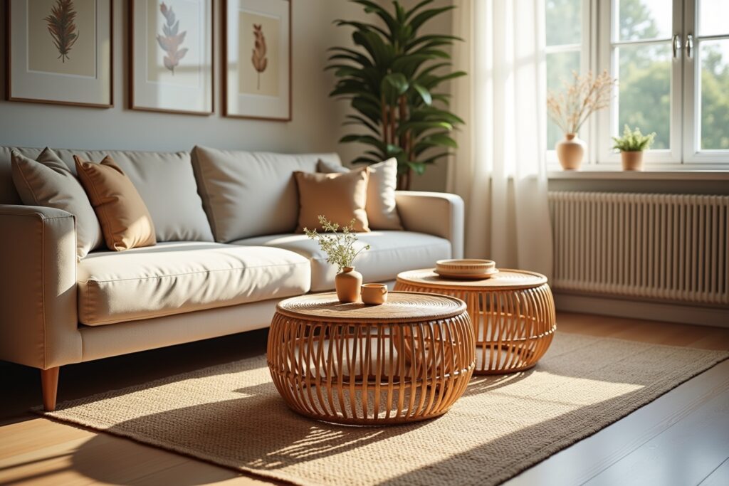 Der Rattan Couchtisch in Kombination mit anderen Naturmaterialien